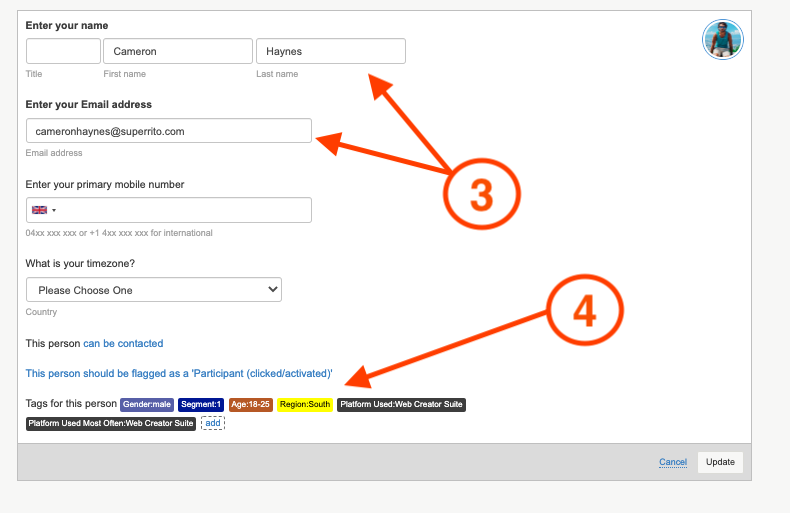 3. Selecting the 'edit' option from the action menu, will open the person's details where you will be able to update their name, email address and phone number.