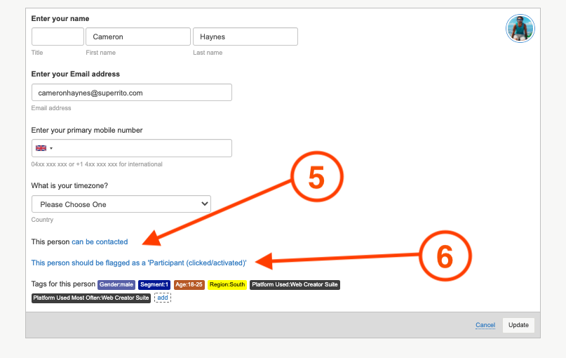 5.You will also be able to change whether or not a person can be contacted. If you change it so a person can not be contacted they will not receive any communication from the platform, this also includes invitation links and exported file download links.