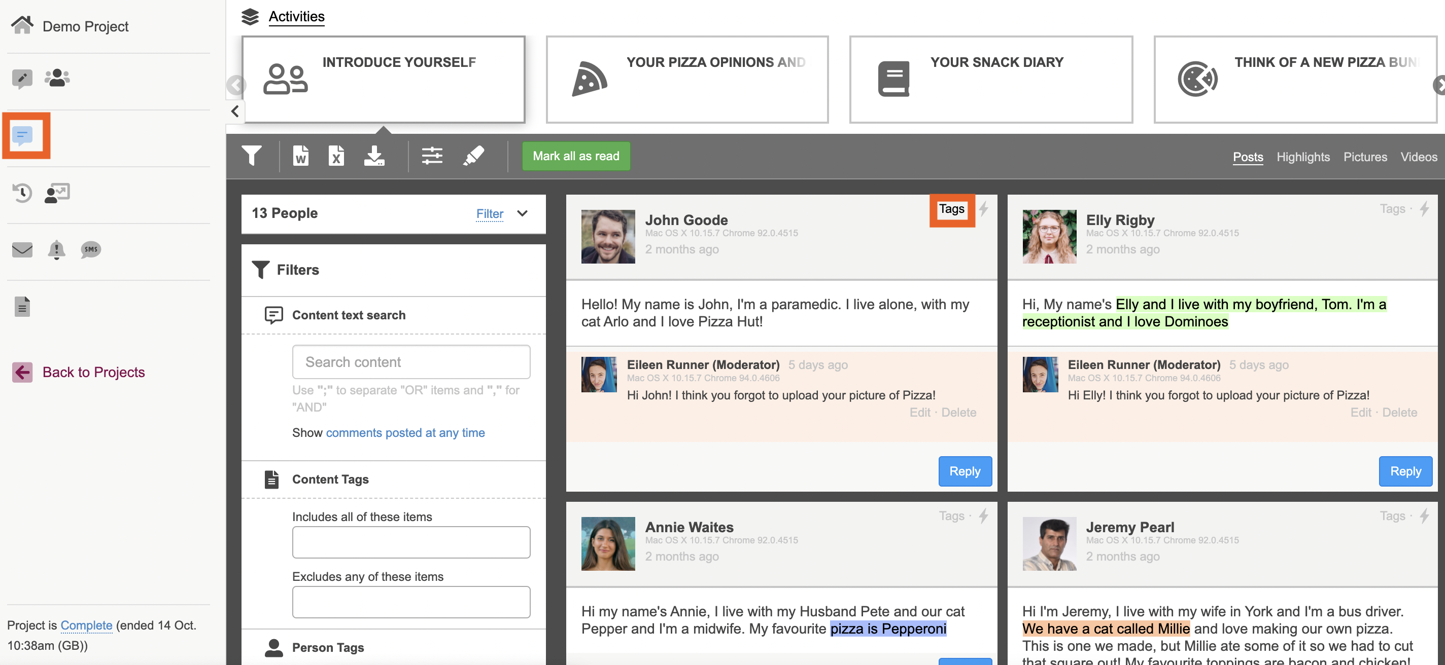 TIP: Content tags are any tags that have been added to a post, these included those pinned onto posts and those used in heatmap activities.