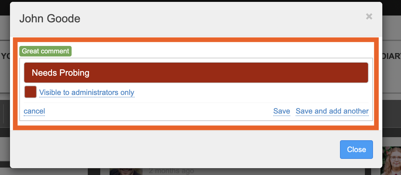 Enter in the tag using the 'add tag' function, and selecting the small coloured square to change the colour. You can have tags like 'great comment' , ' needs probing' or 'to be used in reporting'
