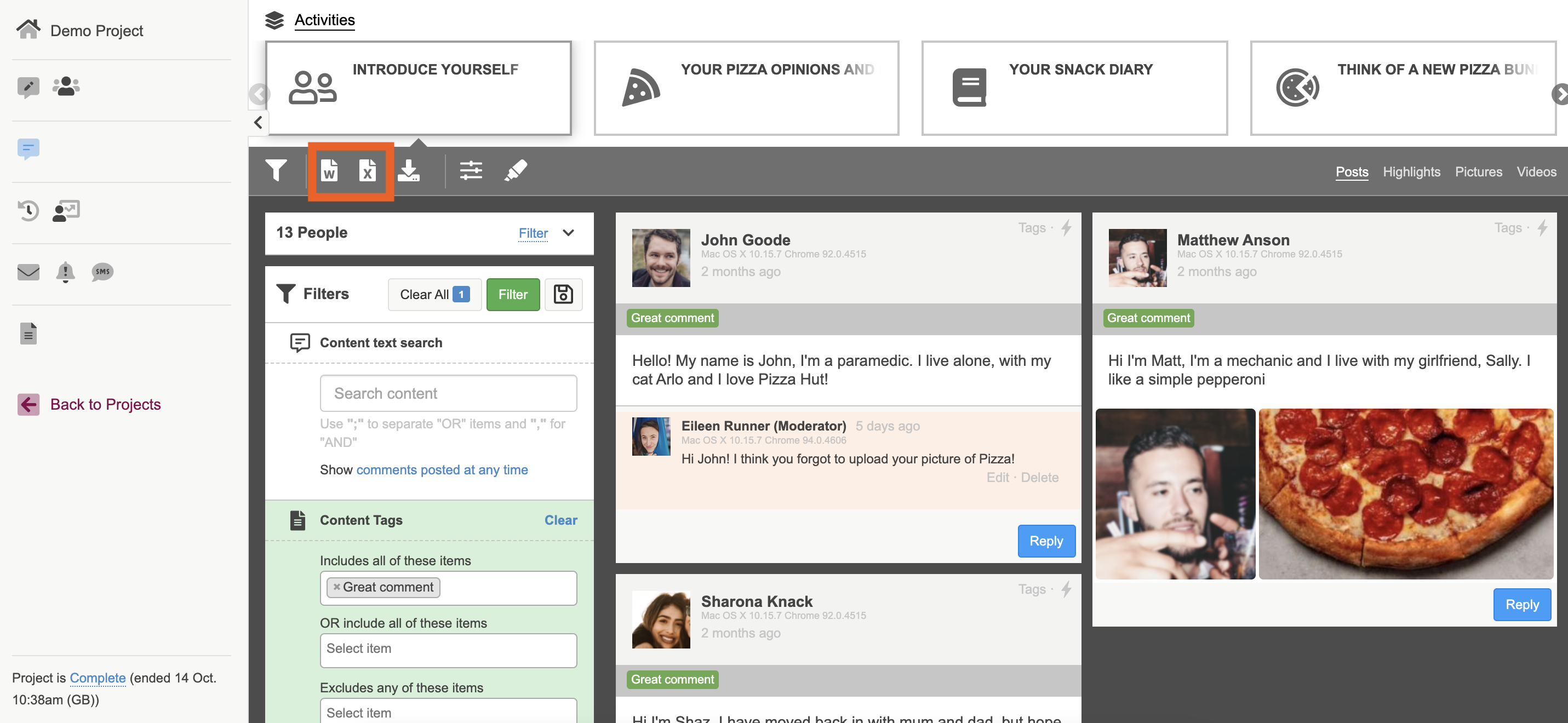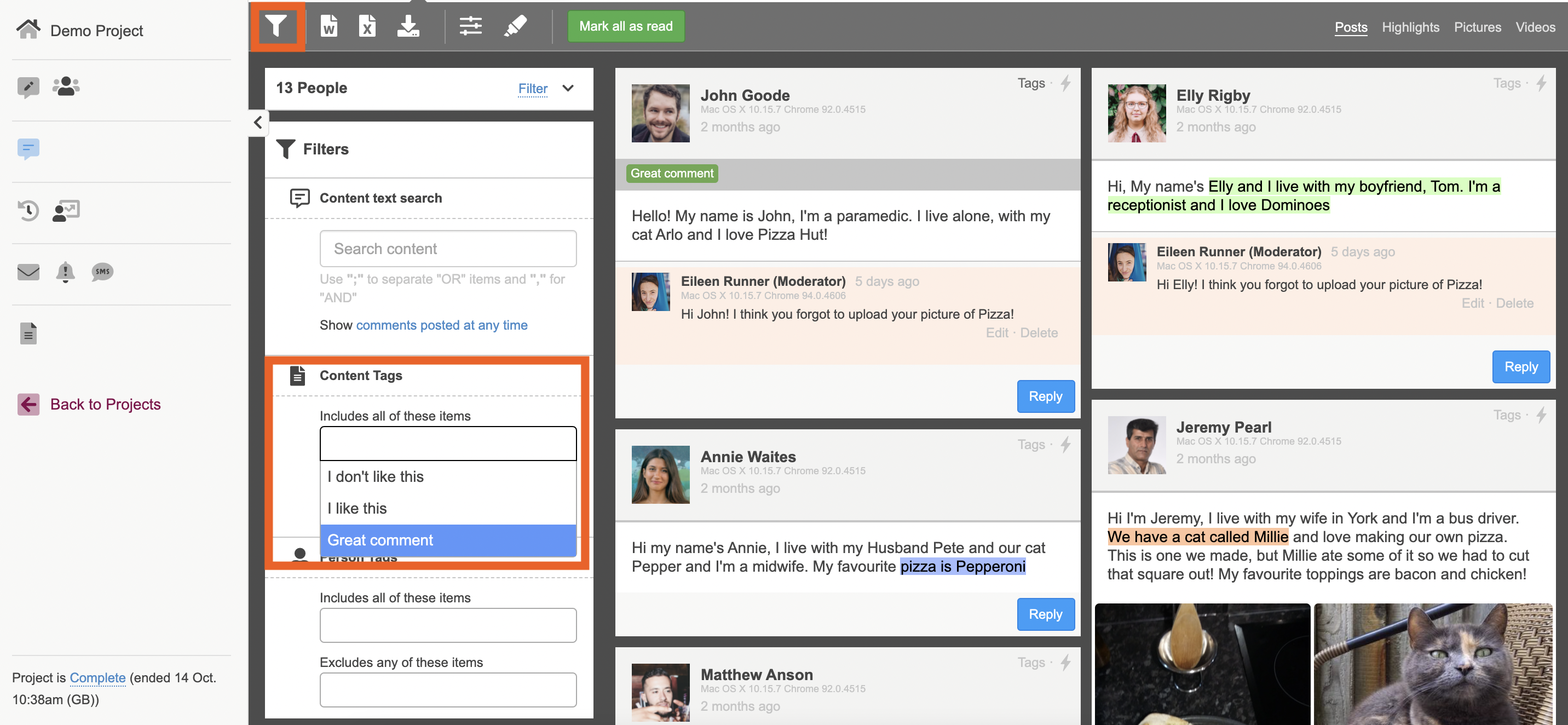How to tag posts in responses, filter on the tags and export the tagged posts into transcripts.