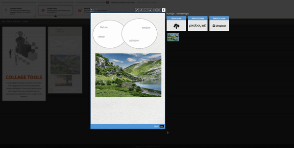 Personal Canvas: Provide a virtual piece of paper for participants to place images, text, lines and shapes on. Uses include the creation of collages and mood boards.
