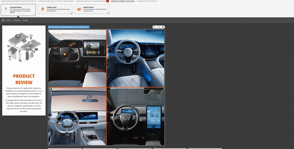Pin Task: Gain insights into what participants think of a particular image or concept by letting them place “Pins” on areas that they have an opinion on.