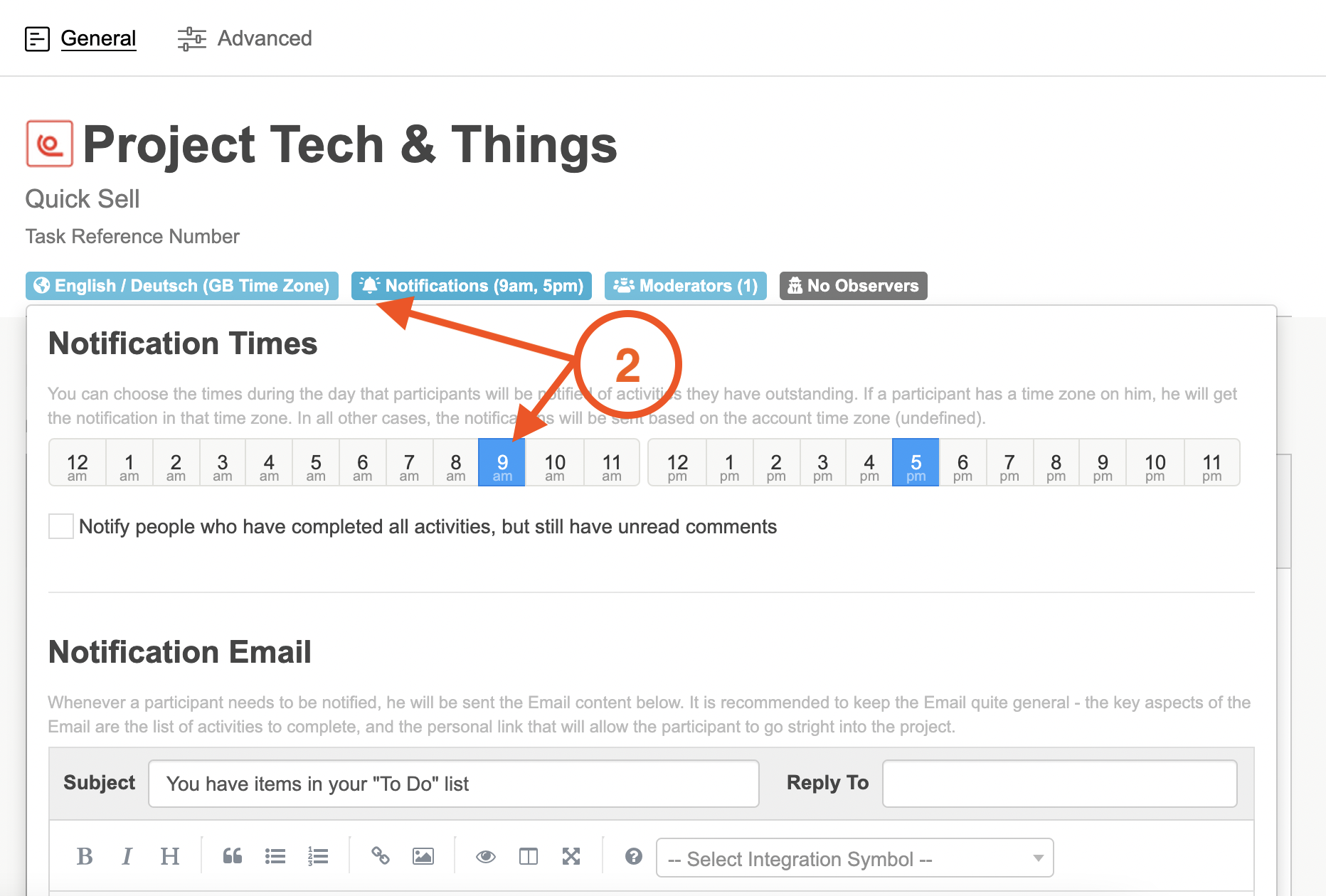 TIP: If a participant has a time zone on them (for more information on adding time zones to participants click here), they will get the notification in that time zone. In all other cases, the notifications will be sent based on the project or account time zone.