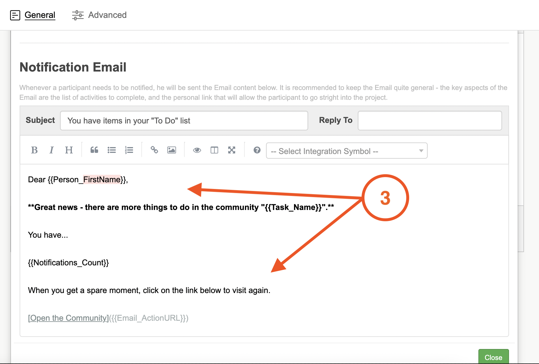 3. You can also change the content of the notification email, but it is recommended to keep it quite general. If you want to send individualised notification emails then you can do so via the people browse. You can find out more about this in our article here