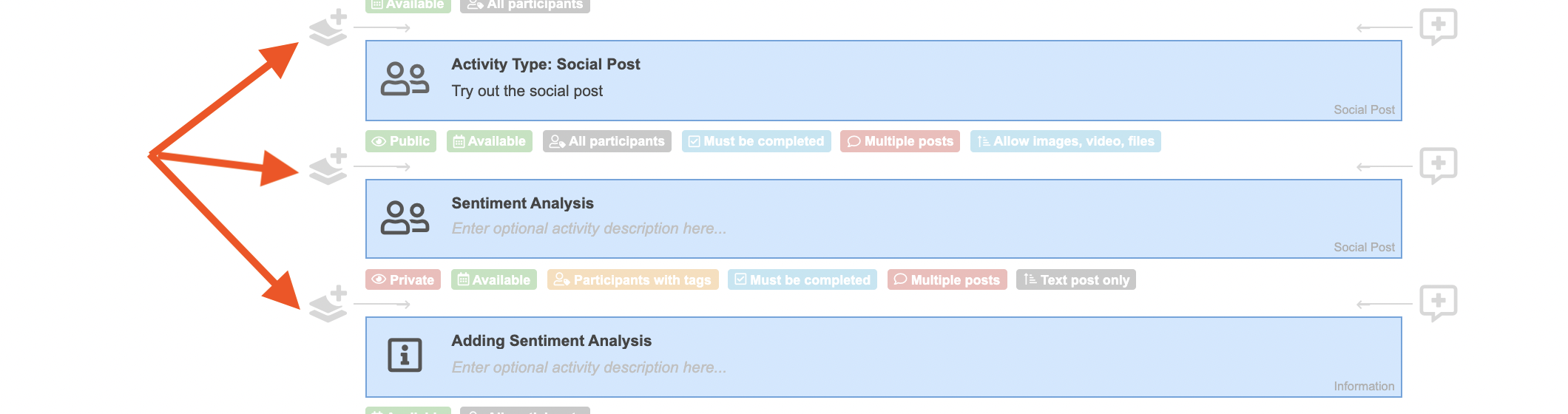 NOTE: If you are adding in an activity group after you have set up your activities, you will need to select the + icon above the set of activities you want to group.