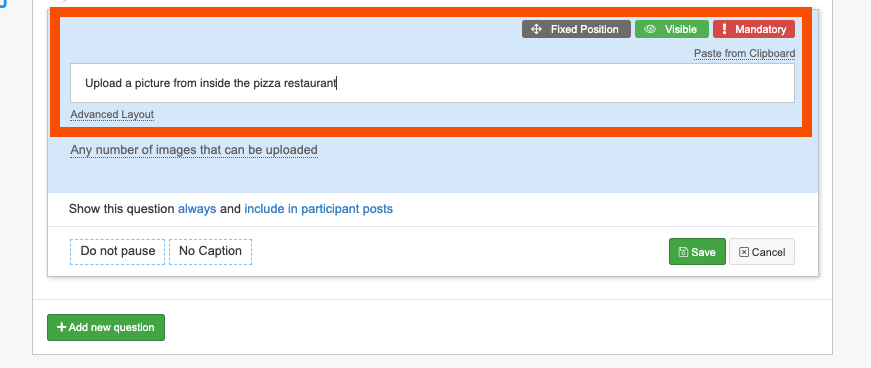 2. Enter in some information about what images you want the participant to upload in the question text box.