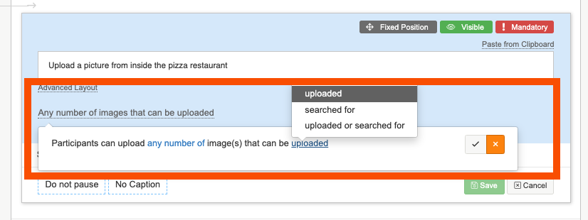 3. You can choose how many images you would like the participants to upload, and if you would like to enable searching for images using our pixabay and unsplash search engines.