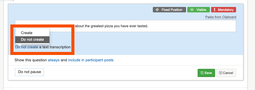 3. Select whether or not you would like the platform to transcribe your audio. Please note the platform does not support audio transcription in certain languages, you can check to see whether or not your language is supported here.