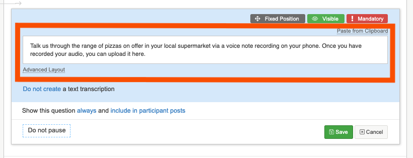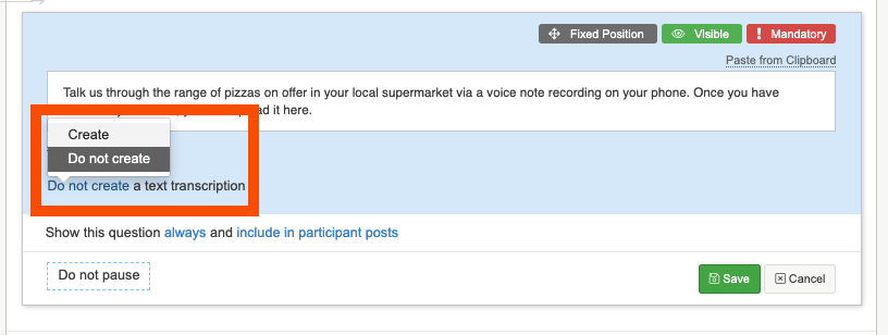 2. Enter in some information about what you would like participants to include in their audio / voice note.