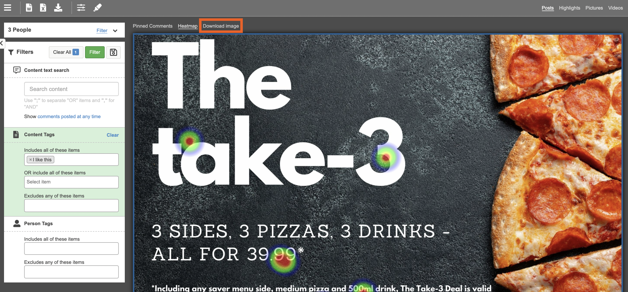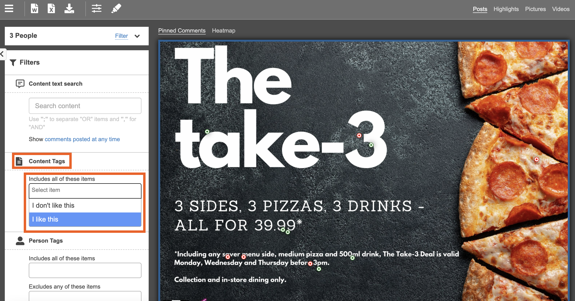 If you have used comment tags in your Pin Task activity, you will be able to filter them to better compare the different comments and download different heatmaps for each tag.