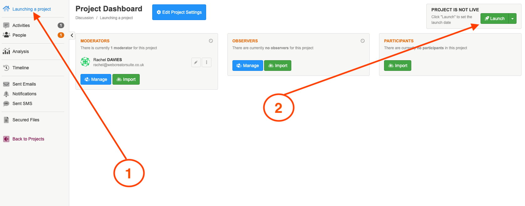 The easiest way to launch your project is via the project dashboard, follow these steps for a successful launch: