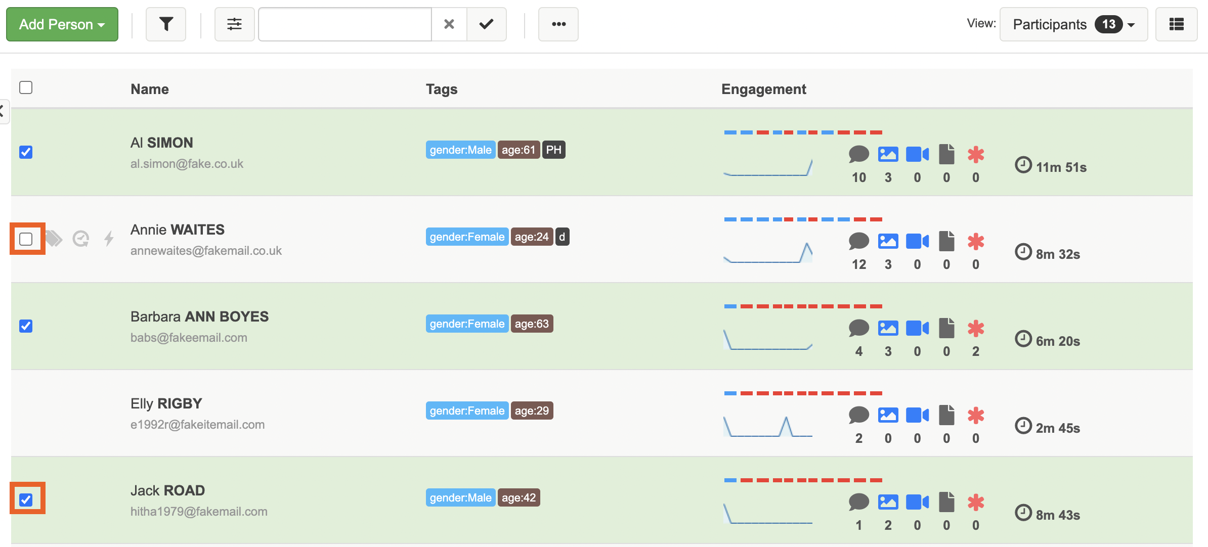 1. You can manually select a number of people, by clicking the checkbox next to name, you can select as many people as you like.
