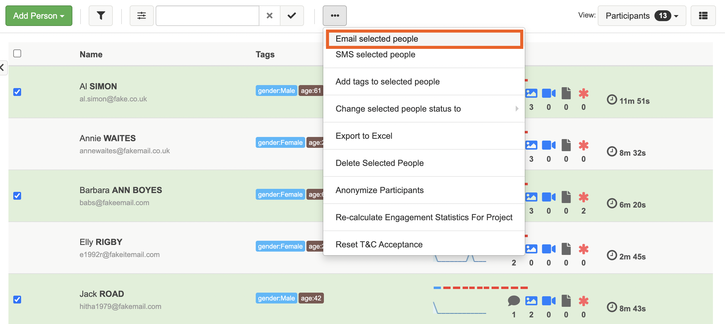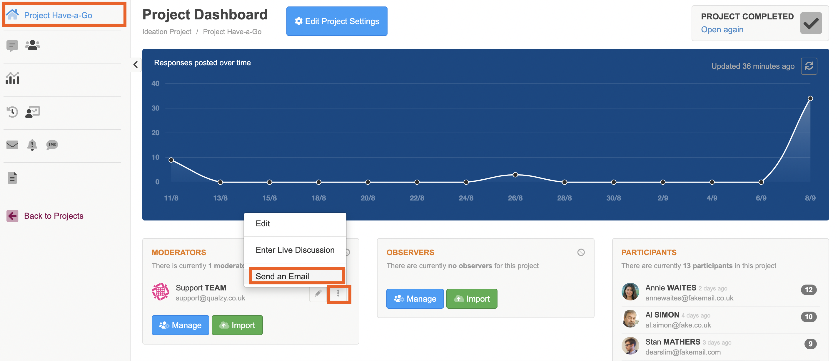 How to send emails to moderators, participants and observers via the platform’s people browse.