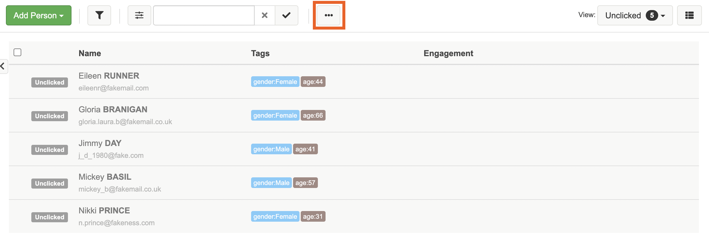 2. Once you have changed your view, to reflect the group of people you are emailing. Click on the 3 dots menu above the list of names and next to the search box.