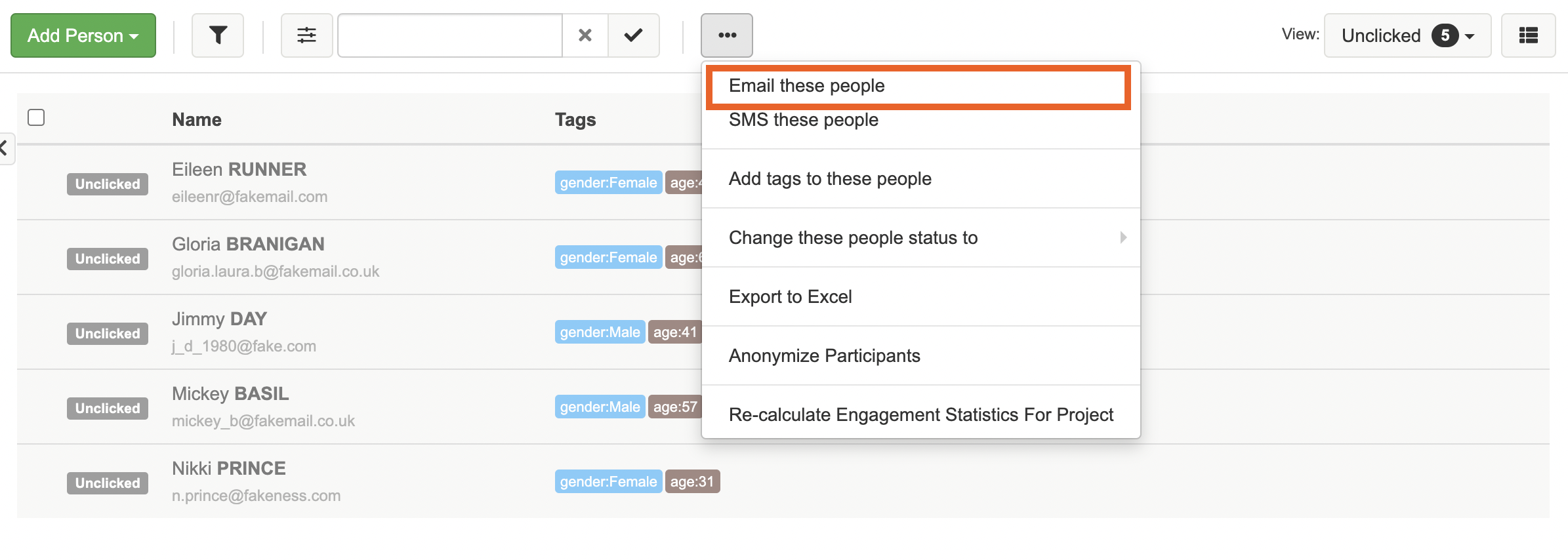 TIP: By 'Unclicked' we mean those participants who have yet to click on their link and enter the platform. You will want to send out invitation links to everyone who is 'Unclicked'