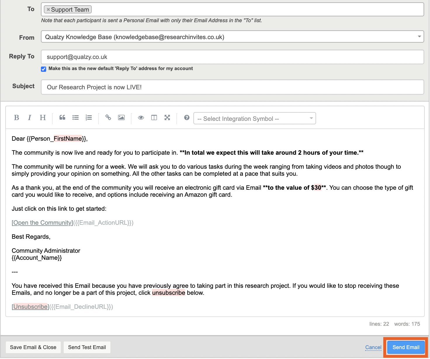 There are times when you’ll want to send an email to a group of people, such as sending invitation links when a project goes live. We recommend setting or scheduling your project to go live before sending out these emails.