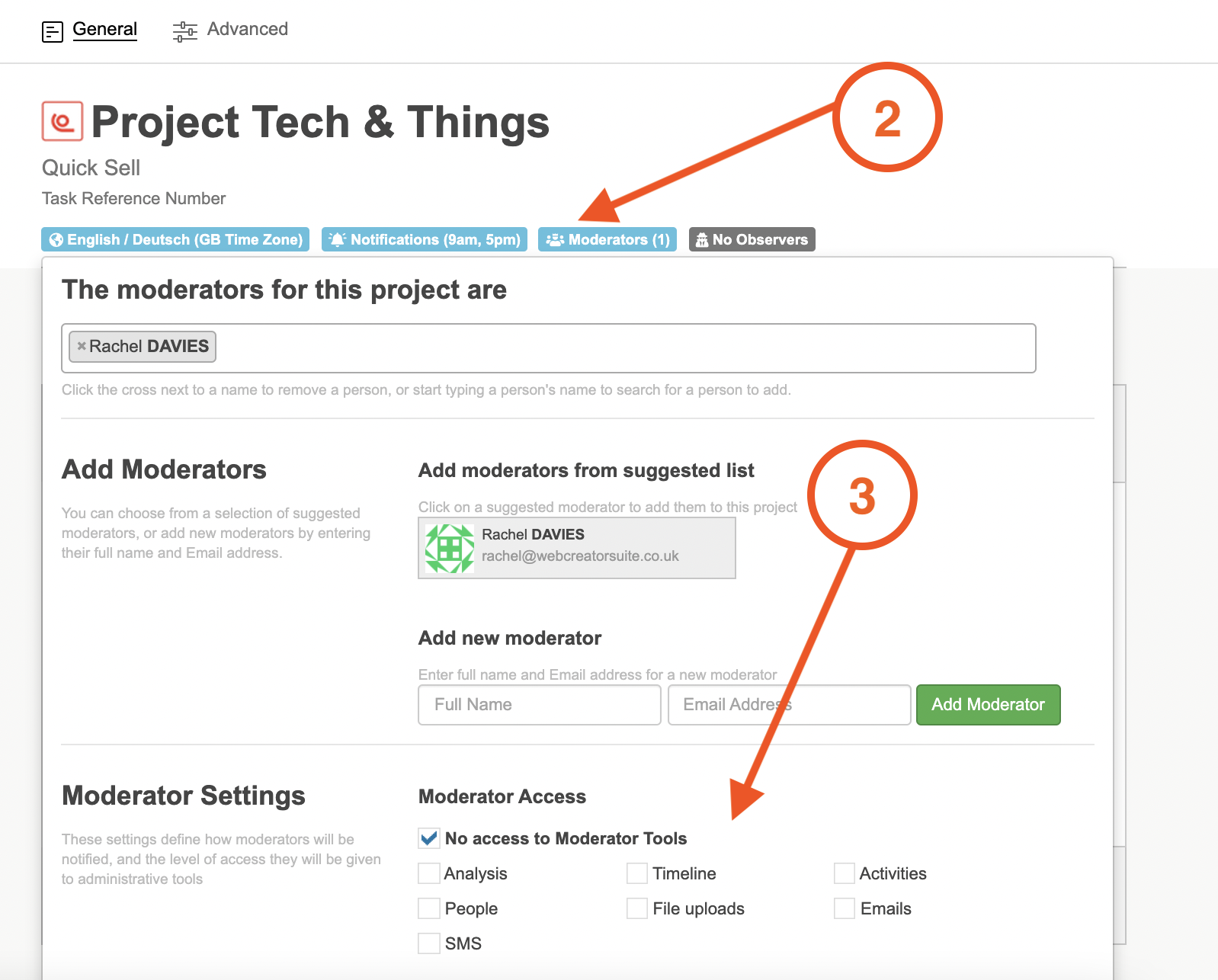 You will want to give your Moderators access to tools to help them get the most out of the project. Follow these steps to give them access: