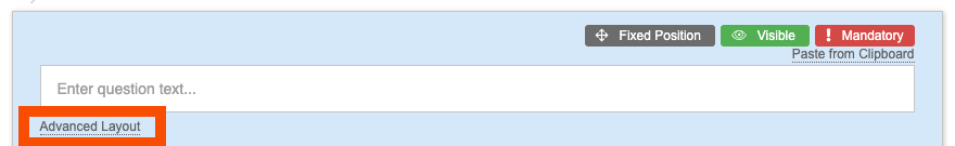 1. To get to the advanced layout screen, click on the 'advanced layout' link just beneath the question text box.