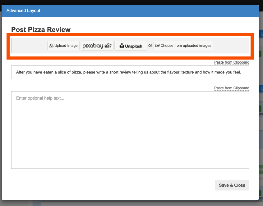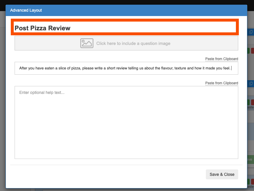 In advanced layout, you can add an image and header to your question, or add in some help text. All of these options are optional.