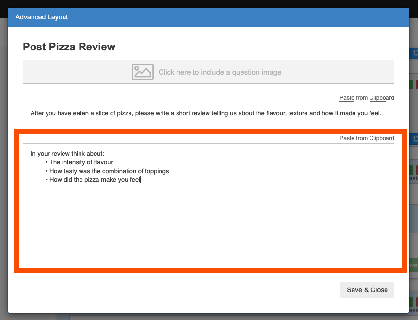 You may have questions that you need to ask to different participants based on person tags. For example you might want to ask a question to participants who order from Dominos and then a different question to participants who order from Pizza hut.