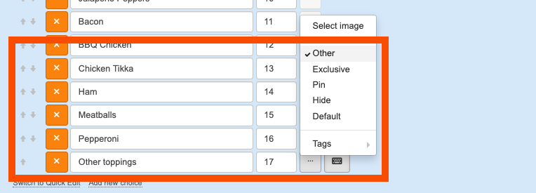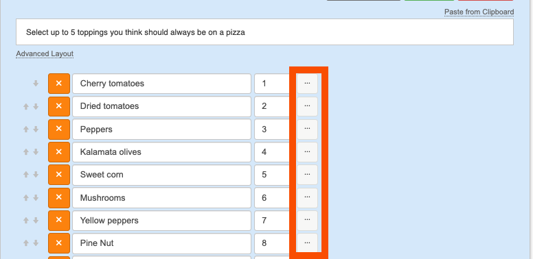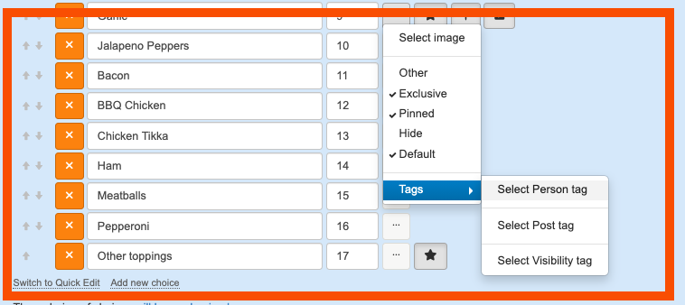 4. If you are randomising the ordering of your choices, you may have a choice where you want it to always appear in the same place, by 'pinning' this choice using the pin option, this choice will never be randomised and always appear in that place.