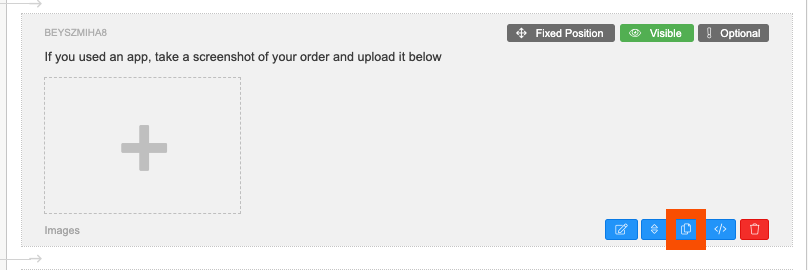 1. Beneath the created question box there is a line of blue icons, and one red one. The third icon along is the button you will need to duplicate your question.