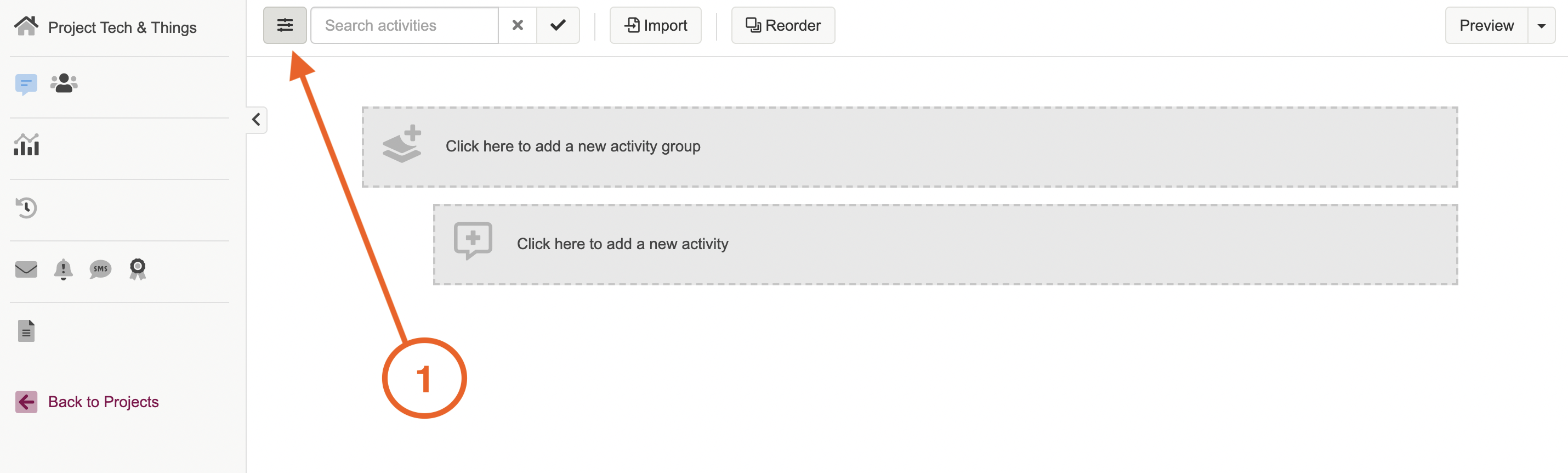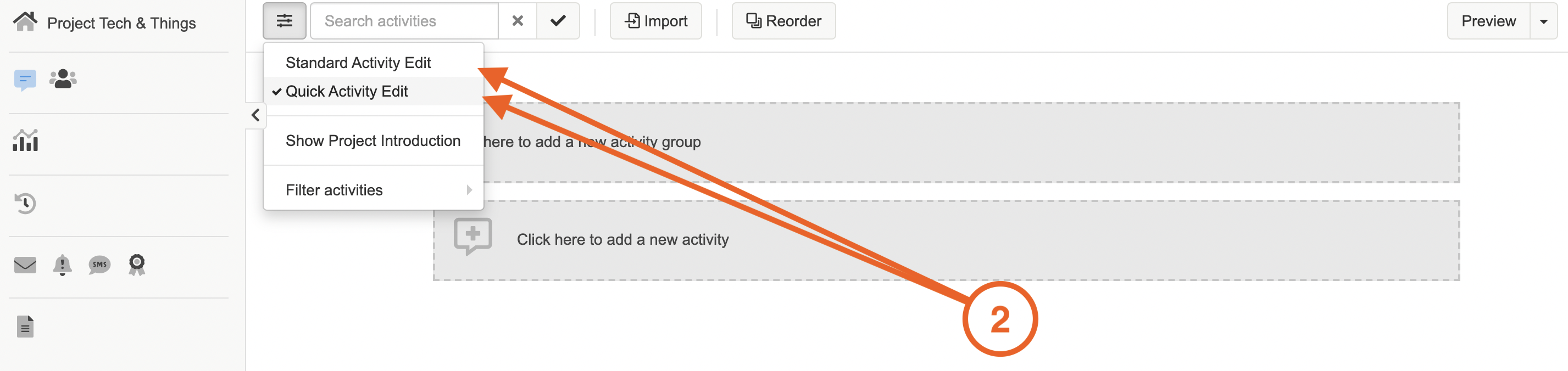 N.B this article will assume you are already in the activity edit browse. If you are not navigate your way there by selecting the speech bubble icon on the left hand side menu bar.